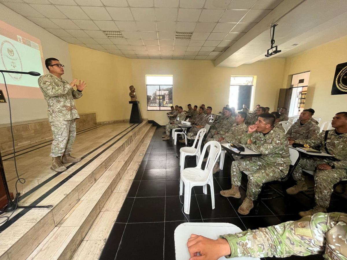 El día viernes 20 de enero de 2023, en coordinación con el Coronel FAP Erick Ronald RAMIREZ VALLE Director del Centro del Derecho Internacional Humanitario y Derechos Humanos de las FFAA y el GRAL BRIG EP Edilberto Núñez QUIPUZCO, Comandante General de la 1ra Brigada de Fuerzas Especiales, se realizó la capacitación en “USO DE LA FUERZA” a los jefes de patrulla y adjuntos que participarán en Acciones Militares en apoyo a la Policía Nacional, por los últimos acontecimientos suscitados en el país.