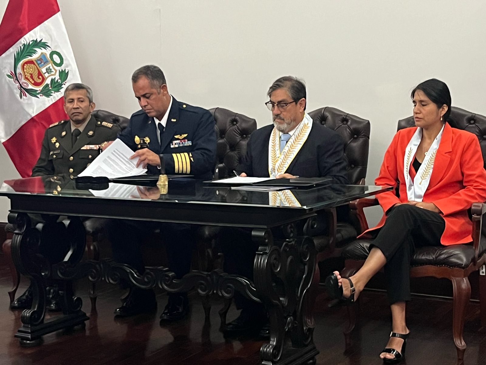 El citado Convenio Marco fue suscrito por el señor Doctor Raúl Canelo Rabanal, Decano del Colegio de Abogados de Lima (CAL) y el Coronel FAP Nolberto Luis Puente Alfaro, Director del Centro del Derecho Internacional Humanitario y Derechos Humanos de las Fuerzas Armadas del Perú, y contó con la presencia del Coronel EP Julio Ramos Quintana, representante de la Dirección de Educación y Doctrina del Ministerio de Defensa, la Abogada Minerva Córdova Cena, Directora de Académica y Promoción Cultural del Colegio de Abogados de Lima, y funcionarios y miembros de ambas instituciones.