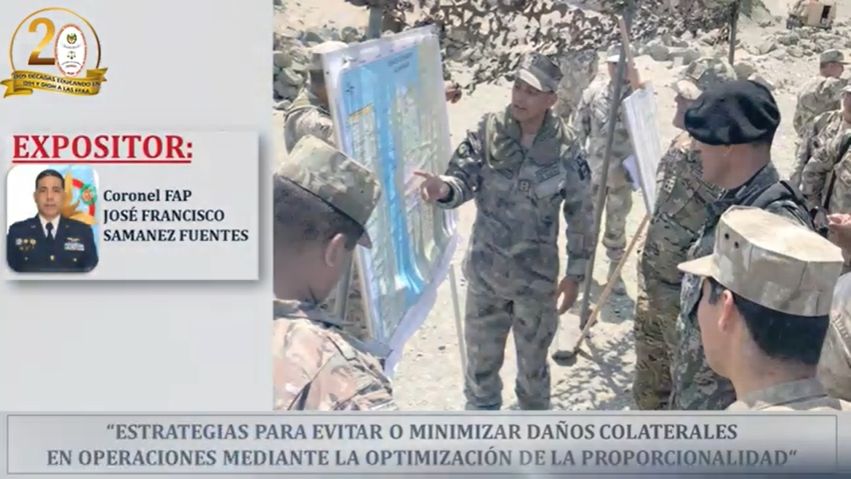 𝗘𝗹 𝗖𝗲𝗻𝘁𝗿𝗼 𝗱𝗲𝗹 𝗗𝗲𝗿𝗲𝗰𝗵𝗼 𝗜𝗻𝘁𝗲𝗿𝗻𝗮𝗰𝗶𝗼𝗻𝗮𝗹 𝗛𝘂𝗺𝗮𝗻𝗶𝘁𝗮𝗿𝗶𝗼 𝘆 𝗗𝗲𝗿𝗲𝗰𝗵𝗼𝘀 𝗛𝘂𝗺𝗮𝗻𝗼𝘀 𝗱𝗲 𝗹𝗮𝘀 𝗙𝘂𝗲𝗿𝘇𝗮𝘀 𝗔𝗿𝗺𝗮𝗱𝗮𝘀, órgano académico del Ministerio de Defensa organizó la conferencia magistral “estrategias para evitar o minimizar daños colaterales en operaciones mediante la optimización de la proporcionalidad”, que estuvo a cargo del señor Coronel FAP JOSE FRANCISCO SAMANES FUENTES. Dicha conferencia se realizó de forma virtual, transmitiendo a través de la plataforma ZOOM y en las diferentes redes sociales del CDIH-DDHH