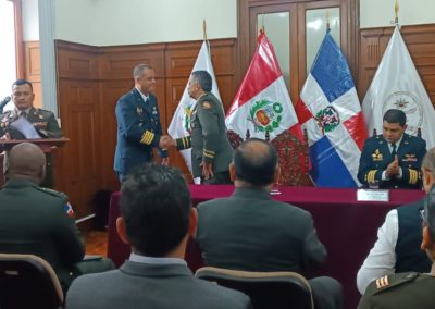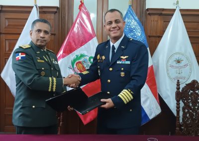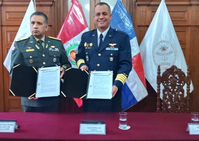 El Centro del Derecho Internacional Humanitario y Derechos Humanos de las Fuerzas Armadas, de acuerdo a su función de capacitar y difundir las normas del Derecho Internacional Humanitario y Derecho Internacional de los Derechos Humanos, busca establecer coordinaciones académicas con organismos nacionales e internacionales relacionado a tal fin; en relación a ello, el día 16 de setiembre de 2024 realizó la firma de un Convenio Marco de Cooperación Interinstitucional con la Universidad Nacional para la Defensa “General Juan Pablo Duarte y Díez” (UNADE) de República Dominicana.